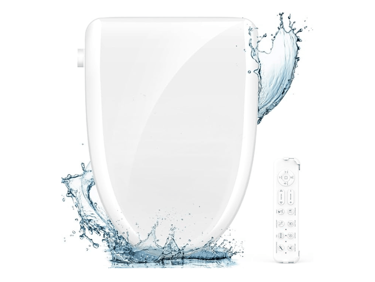 Heated Toilet Seat with Dryer, Self-Clean Stainless Steel Nozzle, Soft Close Lid, Warm Water, Feminine & Child Wash, Adjustable Water Pressure, Electric Bidet, LED Nightlight