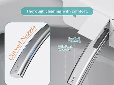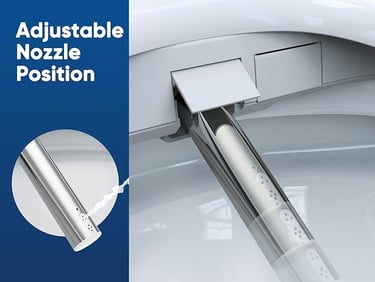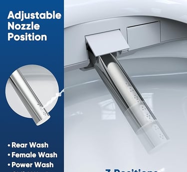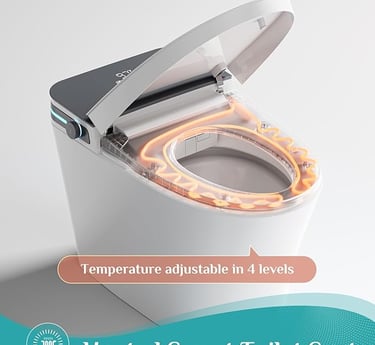 Smart ShowerToilets for BathroomsThe elongated toilet seat heats up quickly, and the warm air dries and removes the discomfort. Never stumble in the dark with built-in night light, offering comfort, convenience, and safety.